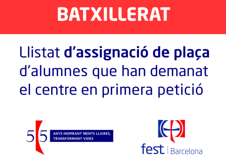 BATXILLERAT. ALUMNES ASSIGNAT AL CENTRE EN PRIMERA PETICIÓ
